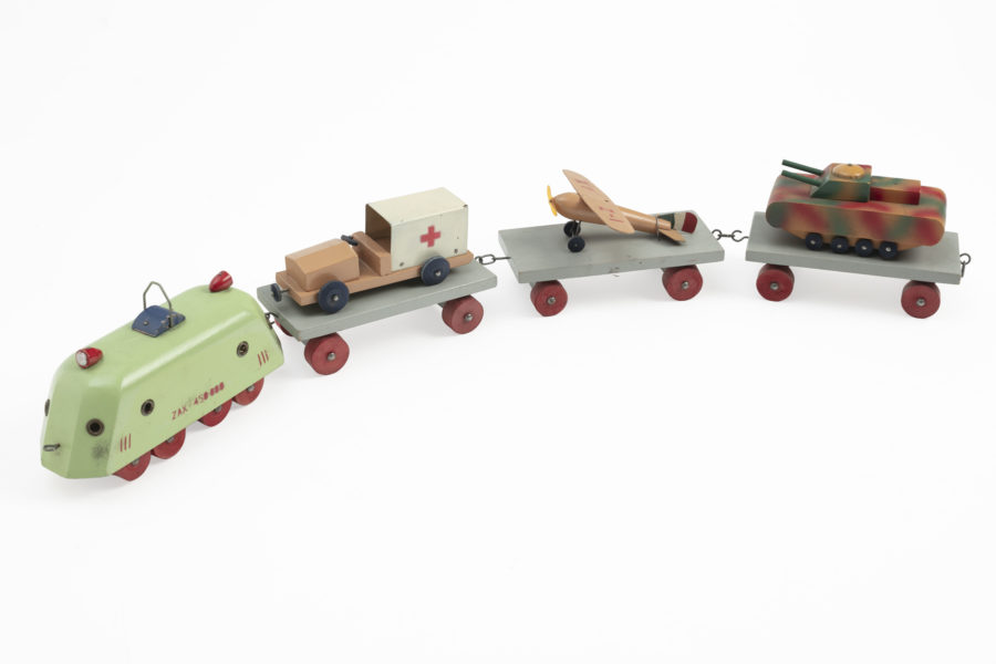 ZAX 458-888 MilitärkonvoiZax - ItalienSpieleEinmotorigEindeckerZax Italien 1935 Holz, bemalt Ohne Antrieb 9 x 66 x 13 cm