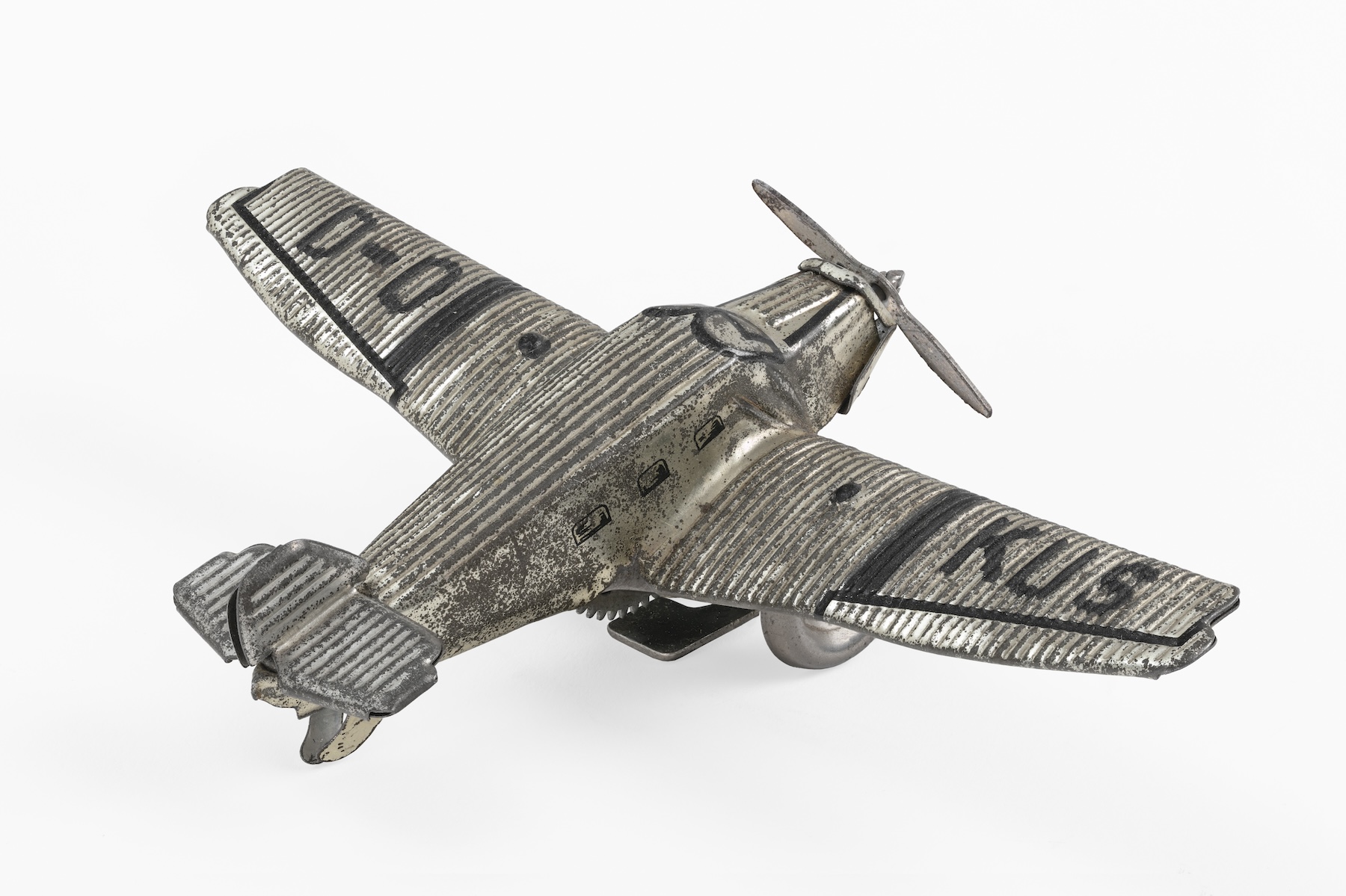 1935–1939, clockwork mechanism, rolls on the ground, propeller turns, 20.5 x 13 cm.