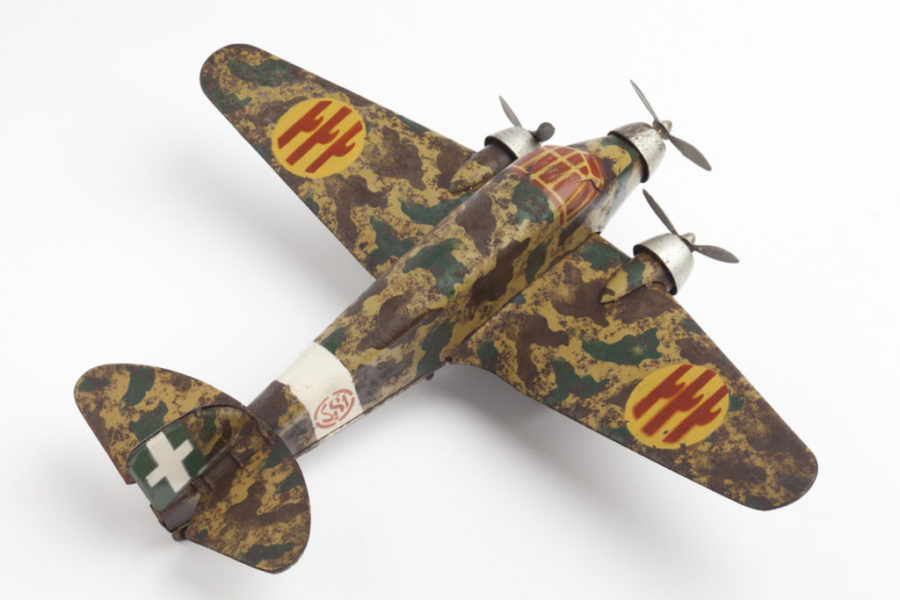 Nombreux avions-jouets des années 1930 en sont parées comme ce bombardier bimoteur de Marklïn aux armes du royaume d’Italie, réalisé pour le magasin de jouets Fratelli Venegoni de Turin