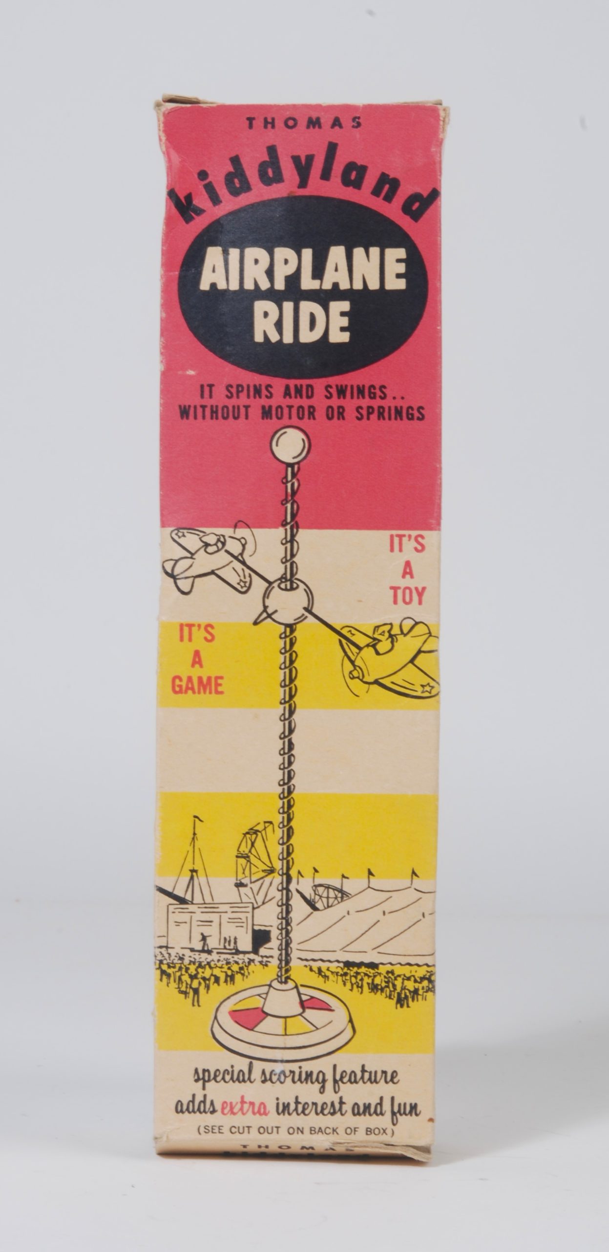 Airplane RideThomas Toy - États-UnisJeux d’avionAnnées 1950multicoloreMonomoteurMonoplanThomas Toy Etats-Unis années 1950 Plastique Fonctionne par gravité 24.0 x 28.0 cm